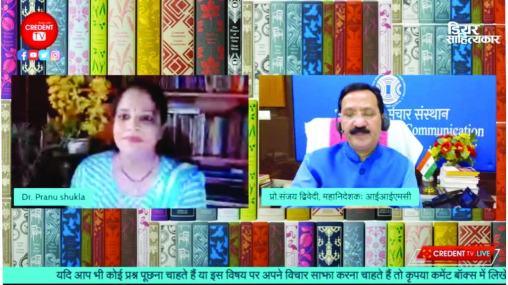 नई दिल्ली: भारतीय जन संचार संस्थान (आईआईएमसी) के महानिदेशक प्रो. (डॉ.) संजय द्विवेदी ने *क्रेडेंट टीवी* के कार्यक्रम *’डियर साहित्यकार’* में अपने विचार व्यक्त करते हुए कहा कि मीडिया हमारे लोकतंत्र का चौथा स्तंभ है। इसका हमारी भाषा और संस्कृति पर गहरा प्रभाव पड़ता है। निष्पक्ष पत्रकारिता वर्तमान समय की मांग है। कार्यक्रम की मेजबानी युवा लेखिका एवं आलोचक *डॉ. प्रणु शुक्ला* ने की।