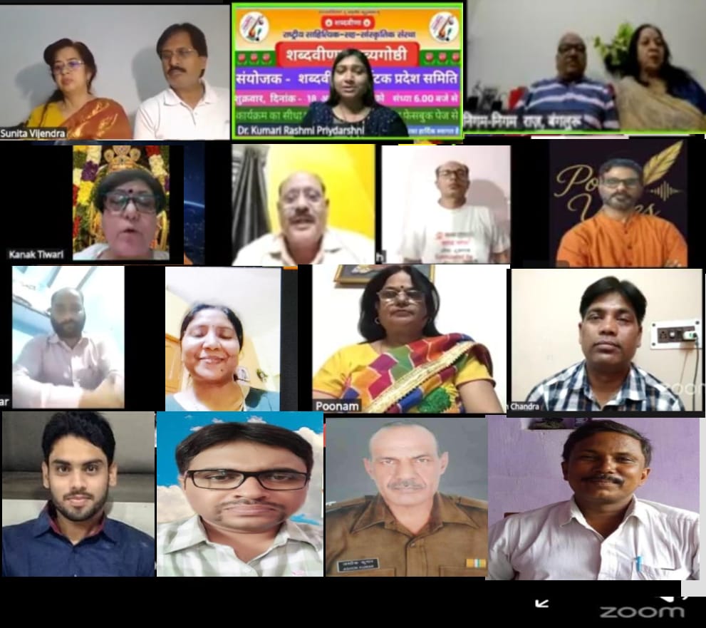 गया। राष्ट्रीय साहित्यिक-सह-सांस्कृतिक संस्था ‘शब्दवीणा’ की कर्नाटक प्रदेश समिति द्वारा प्रथम मासिक काव्य गोष्ठी का आयोजन किया गया, जिसमें शामिल शब्दवीणा कर्नाटक प्रदेश समिति के सभी पदाधिकारी, शब्दवीणा की राष्ट्रीय समिति, विभिन्न प्रदेश एवं जिला समितियों के रचनाकारों ने एक से बढ़कर एक स्वरचित कविताएँ पढ़ीं। काव्य गोष्ठी का संयोजन शब्दवीणा की संस्थापक-सह-राष्ट्रीय अध्यक्ष प्रो. डॉ. रश्मि प्रियदर्शनी, कर्नाटक प्रदेश अध्यक्ष सुनीता सैनी गुड्डी एवं प्रदेश उपाध्यक्ष विजयेन्द्र सैनी के निर्देशन में किया गया। कार्यक्रम की अध्यक्षता शब्दवीणा विजयेन्द्र सैनी ने की तथा संचालन सुनीता सैनी ने किया। राष्ट्रीय अध्यक्ष ने शब्दवीणा कर्नाटक प्रदेश समिति द्वारा आयोजित प्रथम मासिक काव्यगोष्ठी के आयोजन को शब्दवीणा की अन्य प्रदेश तथा जिला समितियों के लिए अनुकरणीय बताते हुए अहिन्दी भाषी प्रदेशों में भी हिन्दी का परचम शान से लहराने हेतु शब्दवीणा परिवार के संकल्प को दुहराया।