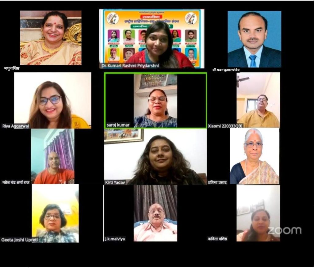 जहाँ डॉ रश्मि प्रियदर्शनी ने “रंग-बिरंगी खुशियाँ लेकर, आयी होली, आयी रे। सबके मन, आनन पर बन मुस्कान मधुर, लहरायी रे’ स्वरचित होली गीत सुमधुर स्वर में गाया, वहीं शब्दवीणा फरीदाबाद जिला उपाध्यक्ष महेश चंद्र शर्मा राज ने ‘हो, हो, हो, हो, हो होरी है। होरी है, बरजोरी है’ होली गीत गाकर खूब वाहवाहियाँ पायीं। वहीं गया जिला अध्यक्ष जैनेन्द्र कुमार मालवीय ने “सांस्कृतिक सद्भाव प्रेम का पावन पर्व यह होली है” रचना पढ़ी। कवयित्री कविता वशिष्ठ की रचना “कवियों का है संग यहाँ पर, शब्दवीणा की टोली, आओ खेलें होली” को खूब सराहना मिली। झारखंड प्रदेश अध्यक्ष वरिष्ठ कवयित्री प्रतिभा प्रसाद ने “मन के अंदर छंद बने हैं, रंगों से रास रचाने को। आ जाना तुम कृष्ण कन्हैया संग में ताल बजाने को’ गीत गाया, तो वहीं हरियाणा प्रदेश सचिव सरोज कुमार ने गाया “खुशियों के तुम रंग बिखेरो, मिलेंगी खुशियाँ तुमको ढेरों।” कवयित्री कीर्ति यादव की संगीत भरी रचना ‘होली आई, होली आई, रंग-बिरंगी होली आई’ पर श्रोताओं से खूब प्रशंसा मिली।