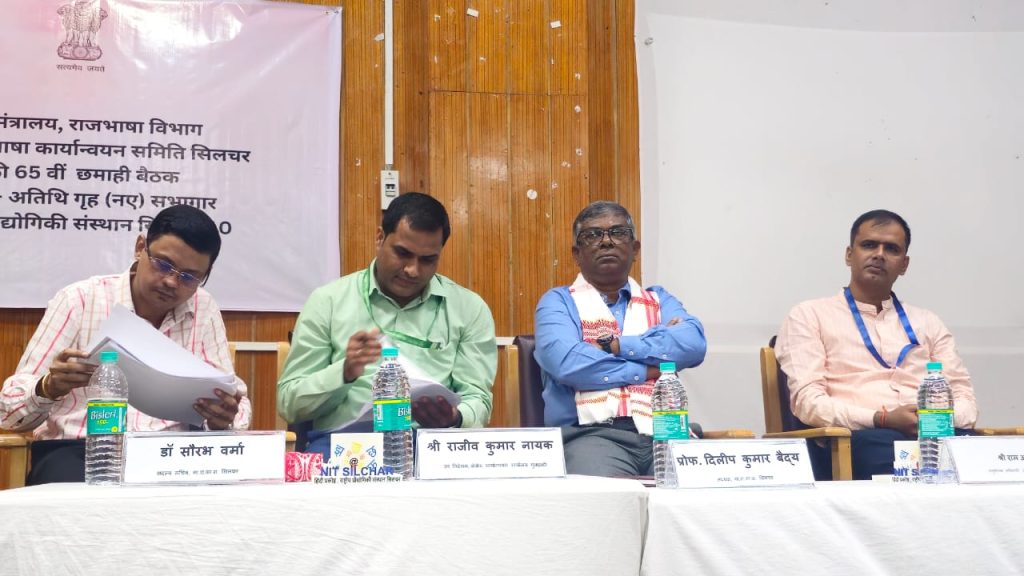 शिवकुमार व रितेश नुनिया शिलचर, 22 अक्टूबर। गृह मंत्रालय, राजभाषा विभाग के तत्वावधान में नगर राजभाषा कार्यान्वयन समिति, शिलचर की 65वीं छमाही बैठक आज राष्ट्रीय प्रौद्योगिकी संस्थान (एनआईटी) शिलचर के अतिथि गृह सभागार में सफलतापूर्वक संपन्न हुई। बैठक की अध्यक्षता एनआईटी शिलचर के निदेशक एवं समिति के अध्यक्ष प्रोफेसर दिलीप कुमार बैद्य ने की। इस अवसर पर श्री राजीव कुमार नायक, उप निदेशक, क्षेत्रीय कार्यान्वयन कार्यालय (राजभाषा), गुवाहाटी मुख्य अतिथि के रूप में उपस्थित रहे। मंच पर श्री राम एकबाल यादव अनुसंधान अधिकारी और श्री सौरभ वर्मा, सचिव नगर राजभाषा कार्यान्वयन समिति, शिलचर भी मंचासीन थे। बैठक में बराक वैली क्षेत्र के विभिन्न सरकारी कार्यालयों के प्रमुखों ने भाग लिया। नगर राजभाषा समिति के अंतर्गत वर्तमान में 70 कार्यालय शामिल हैं, जिनमें से लगभग 40 कार्यालयों के 70 प्रतिनिधि इस बैठक में उपस्थित रहे।प्रोफेसर दिलीप कुमार बैद्य ने कहा कि इस बैठक का मुख्य उद्देश्य हिंदी के प्रचार-प्रसार से जुड़ी चुनौतियों को समझना और उन्हें दूर करने के उपायों पर चर्चा करना है। उन्होंने बताया कि पिछले दो वर्षों से समिति की ओर से उत्कृष्ट कार्य करने वाले कार्यालयों को सम्मानित किया जा रहा है और इस वर्ष भी कई संस्थानों को पुरस्कार प्रदान किए गए। उन्होंने कहा कि नगर राजभाषा कार्यान्वयन समिति की सदस्यता उन सभी केंद्रीय सरकारी कार्यालयों के लिए खुली है जो इस नगर क्षेत्र में कार्यरत हैं। ऐसे कार्यालय जिनमें आठ या उससे अधिक कर्मचारी कार्यरत हैं, उनकी सदस्यता अनिवार्य है, जबकि छोटे कार्यालय भी अपनी इच्छा से सदस्य बन सकते हैं। उन्होंने कहा कि राजभाषा हिंदी न केवल भारत की पहचान है बल्कि सांस्कृतिक एकता का प्रतीक है। यह हमारे सामाजिक जीवन का अभिन्न अंग है इसका उपयोग करने से दुनिया में भारत का मान सम्मान बढ़ेगा उन्होंने सभी कार्यालयों से प्रोत्साहन योजना बनाने का अनुरोध किया और कहा कि कुछ न करने से, थोड़ा करना अच्छा होता है।