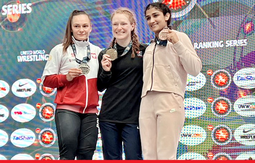 नई दिल्ली। जंतर-मंतर पर डब्ल्यूएफआई प्रमुख बृजभूषण शरण सिंह के विरुद्ध विरोध प्रदर्शन करने वाले छह पहलवानों में शामिल संगीता फोगाट ने शनिवार को हंगरी रैंकिंग सीरीज टूर्नामेंट में गैर-ओलंपिक 59 किग्रा वर्ग में कांस्य पदक जीता। संगीता की शुरुआत करारी हार के साथ हुई, लेकिन उन्होंने दूसरे मैच में जीत के साथ वापसी की।