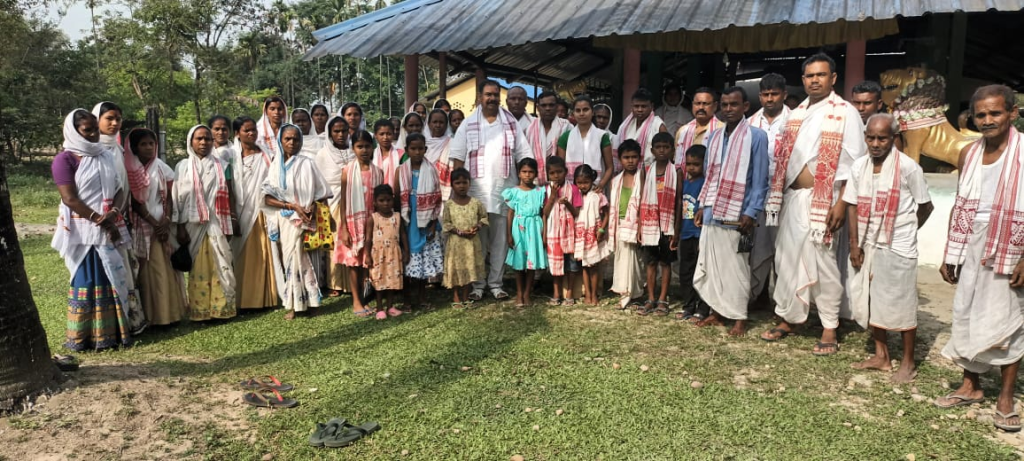 आज 15 अप्रैल 2023 असम लखीमपुर जिला के सियाजूली गांव के अनन्तपुर नामघर में विश्व हिन्दू परिषद गौरक्षा केंद्रीय मंत्री उमेश चंद्र पोरवाल जी पधारे। उनका स्वागत असमिया फुलाम गमछा पहनाकर सुरेन्द्र नायक ने सम्मान किया फिर श्री पोरवाल जी ने सभी ग्राम वासियों को असमिया नव वर्ष एवं रंगाली बिहू की हार्दिक शुभकामनाएं दी। गांववासी किसान गोपालक भाई बहनों बंधुओं के बीच में असमिया पर्व गोरू बिहू एवं भारतीय देशी गाय के पालन कर गाय पर्यावरण, स्वास्थ्य एवं धरती के पोषण के लिए बहुत उपयोगी है की जानकारी दी। पंचगव्य से अनेक प्रकार की औषधियां निर्माण होती है जो मानव स्वास्थ्य के लिए उपयोगी है एवं गोबर से अनेक प्रकार के गो उत्पादों का निर्माण होते है । जैविक खाद व गोमूत्र से कीट नियंत्रण एवं गोनाइल बनाई जाती है। जिसका प्रशिक्षण विहिप गोरक्षा आयाम द्वारा दिलाया जाता है। पोरवाल जी ने बहुत ही महत्वपूर्ण जानकारियां ग्रामवासियो को अवगत कराई। एकल विद्यालय के आचार्यगण एवं व्यास कथाकार सीता नायक जी सहित ग्रामवासी उपस्थित रहे। उपरोक्त जानकारी एकल लखीमपुर के जिला प्रभारी विपुल कुमार नायक ने प्रदान की।