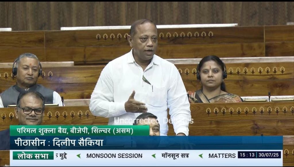 बराक घाटी के लाखों नागरिकों की बहुप्रतीक्षित माँग को संसद के पटल पर बुलंद करते हुए शिलचर के सांसद परिमल शुक्लबैद ने बुधवार को लोकसभा में दिल्ली-शिलचर के बीच सीधी विमान सेवा शुरू करने की जोरदार पैरवी की। उन्होंने इसे सिर्फ़ एक यात्री सुविधा नहीं, बल्कि “जन-सुविधा, क्षेत्रीय संतुलन और राष्ट्रीय एकता” का मुद्दा बताते हुए सरकार का ध्यान आकृष्ट किया।