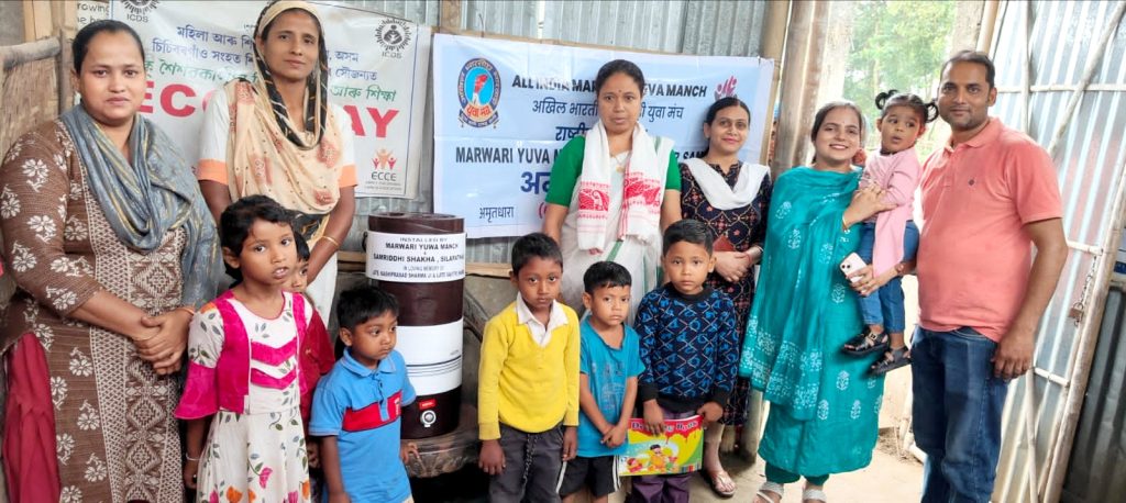 मारवाड़ी युवा मंच सिलापथार एवं सिलापथार समृद्धि शाखा ने मंच के “अमृत धारा” प्रकल्प के अंतर्गत अमृत धारा सेवा संयोजक/संयोजिका मुकेश जैन एवं कविता महेश्वरी के नेतृत्व में दो नंबर गांधी नगर आंगनबाड़ी केंद्र में चौथा इंसुलेटर वाटर फिल्टर स्थापित किया। सर्वप्रथम शाखा के अमृतधारा संयोजक मुकेश जैन ने आंगनबाड़ी के प्रधान कार्यकर्ता मुक्ता दास को अभिवादन करके फूलाम गमछा से अभिनंदन किया। मौके पर शाखाध्यक्षा सोनिया सिंघानिया ने अपने संबोधन में कहा कि यह फिल्टर आंगनबाड़ी मे आने वाले नन्हे – नन्हे बच्चों को अच्छा एवं स्वच्छ पानी प्राप्त हो, और गंदा पानी पीकर बच्चे बिमार ना पड़े , इसको ध्यान में रखते हुए स्वर्गीय काशी प्रसाद जी शर्मा एवं स्व. सावित्री देवी शर्मा की पुण्य स्मृति में यह वाटर फिल्टर प्रदान किया गया है। यह नन्हे मुन्ने बच्चे देश का भविष्य है, आज स्वस्थ रहेंगे तभी आगे बढ़ेंगे। आंगनबाड़ी के कार्यकर्ताओ ने शाखा को इस तरह की सहायता देने के लिए धन्यवाद ज्ञापन किया। इस कार्यक्रम में कोषाध्यक्ष अनिशा जैन एवं शाखा के अन्य सदस्यगण की सक्रिय भागीदारी रही। यह जानकारी सिलापथार समृद्धि शाखा की नवनियुक्त जनसंपर्क अधिकारी श्रीमती कविता महेश्वरी द्वारा दी गई है |