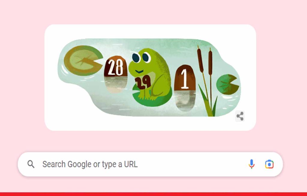 आज 29 फरवरी है जिसके चलते यह साल Leap Year कहलाता है. इस डूडल में आज की तारीख को मेढक की तरह दिखाया गया है जो अचानक से 28 और 1 तारीख के बीच आ जाता है. यह डूडल एक पॉन्ड की तरह बनाया गया है.  यह डूडल एक पॉन्ड में तैयार किया गया है. इसमें 28 और 1 तारीख के बीच में एक लीफ लगी है. इस लीफ पर अचानक से एक मेंढक आकर बैठ जाता है और उसमें से 29 नंबर बाहर आता है जो आज का दिन दिखा रहा है. फिर ये मेंढक अचानक से वापस चला जाता है. इस डूडल पर क्लिक कर आपको आज के दिन के बारे में कई जानकारी मिल जाएंगी.