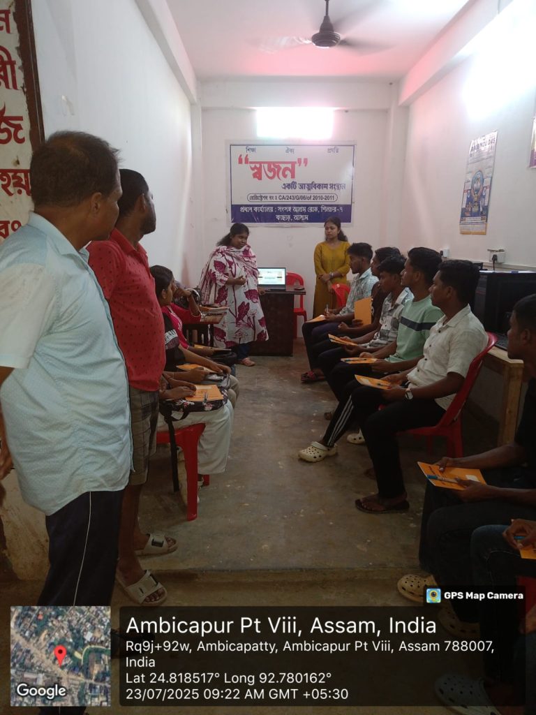 शिलचर, 28 जुलाई:सामाजिक संगठन “स्वजन” द्वारा संचालित एवं भारत सरकार के जनशिक्षण संस्थान के सहयोग से चलाए जा रहे स्वजन कंप्यूटर प्रशिक्षण केंद्र का निरीक्षण किया संस्थान की निदेशक मौटुशी चक्रवर्ती ने।