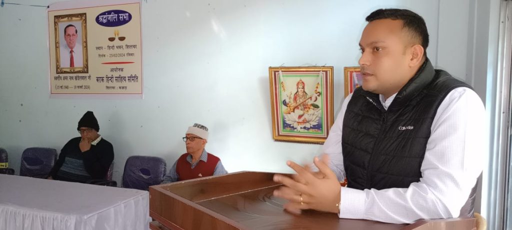 शिलचर 25 फरवरी: आज दिनांक 24 फरवरी रविवार शिलचर उन्नयन भवन रोड स्थित हिन्दी भवन में हाल ही में निधन हुए पूर्व अध्यक्ष आदरणीय अमरनाथ खण्डेलवाल जी की स्मृति में श्रद्धांजलि सभा का आयोजन किया गया।