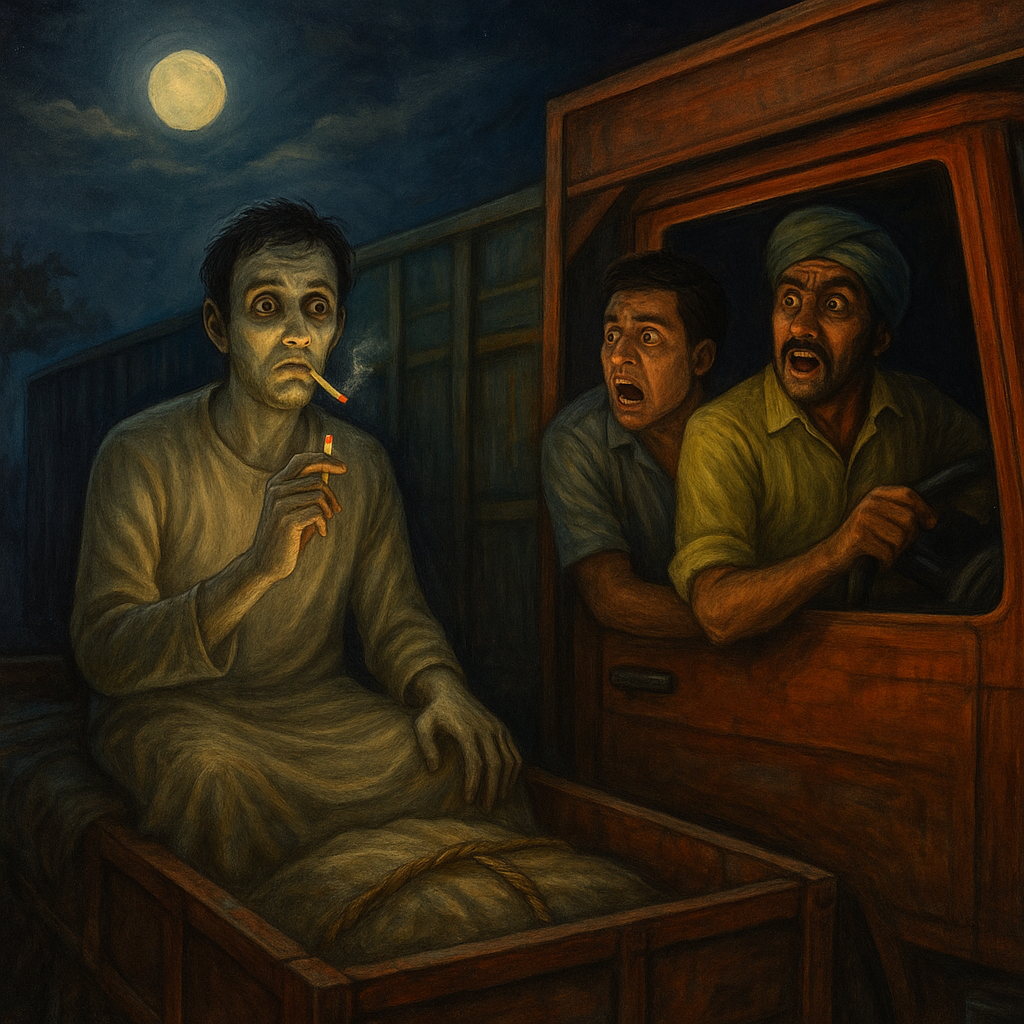 एक ट्रक रात के समय शव लेकर शिलॉंग से शिलचर जा रहा था। रास्ते में ड्राइवर और हेल्पर को चाय पीने की तलब लगी।