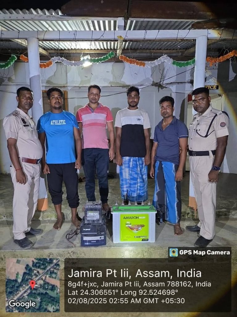 रामनाथपुर, हाइलाकांदी, 3 अगस्त:रामनाथपुर थाना पुलिस को हाल ही में एक बड़ी कामयाबी हाथ लगी है। इलाके में लगातार हो रही चोरी की घटनाओं की जांच के दौरान पुलिस ने चार कुख्यात चोरों को गिरफ्तार किया है। गिरफ्तार आरोपियों के कब्जे से चोरी में इस्तेमाल किए गए उपकरण और धारदार हथियार बरामद किए गए हैं।