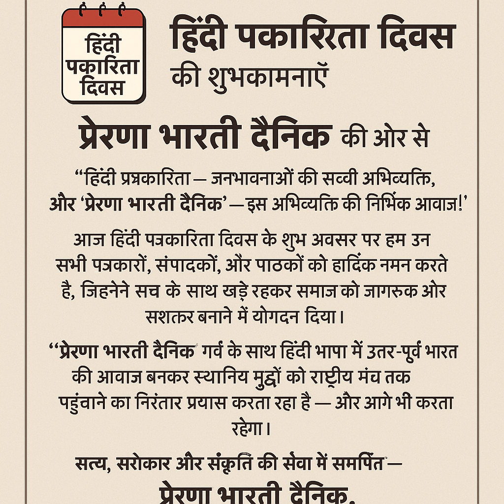 “हिंदी पत्रकारिता — जनभावनाओं की सच्ची अभिव्यक्ति, और ‘प्रेरणा भारती दैनिक’ — इस अभिव्यक्ति की निर्भीक आवाज़!”