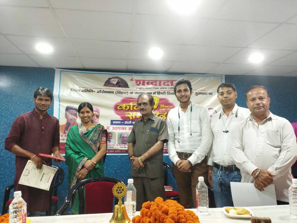राष्ट्रीय साहित्यिक संस्था ‘शब्दाक्षर’ के बिहार प्रदेश की औरंगाबाद जिला समिति द्वारा काव्य महोत्सव का आयोजन किया गया, जिसकी अध्यक्षता शब्दाक्षर औरंगाबाद के जिलाध्यक्ष कवि धनंजय जयपुरी तथा संचालन कवि द्वय विनय मामूली बुद्धि एवं नागेंद्र कुमार केसरी द्वारा किया गया। कार्यक्रम का उद्घाटन शब्दाक्षर बिहार प्रदेश अध्यक्ष सह मुख्य अतिथि मनोज मिश्र ‘पद्मनाभ’, शब्दाक्षर जहानाबाद जिलाध्यक्ष सावित्री ‘सुमन’, औरंगाबाद जिला हिंदी साहित्य सम्मेलन के अध्यक्ष प्रो सिद्धेश्वरच प्रसाद सिंह, उपाध्यक्ष डॉ सुरेंद्र प्रसाद मिश्र, प्रो संजीव रंजन एवं नैप्स के जिलाध्यक्ष अंबेडकर पाल ने संयुक्त रूप से दीप प्रज्ज्वलित करके किया। अतिथियों को पुष्प गुच्छ, अंग वस्त्र, साहित्यिक पुस्तकें एवं प्रशस्ति पत्र प्रदान करके सम्मानित किया गया। तत्पश्चात, ‘शब्दाक्षर’ के राष्ट्रीय अध्यक्ष रवि प्रताप सिंह द्वारा प्रेषित शुभकामना संदेश पढ़ कर सुनाया गया, जिसमें श्री सिंह ने शब्दाक्षर औरंगाबाद जिला समिति के सदस्यों को बिहार में हिंदी साहित्य के प्रचार-प्रसार हेतु सतत रूप से कार्य करने की सलाह दी। शब्दाक्षर की राष्ट्रीय प्रवक्ता-सह-प्रसारण प्रभारी प्रो. डॉ. रश्मि प्रियदर्शनी ने बतलाया कि शब्दाक्षर द्वारा भारतवर्ष के 25 प्रदेशों में प्रदेश तथा जिला इकाइयों द्वारा हिन्दी साहित्य को समर्पित आयोजन किये जा रहे हैं। साहित्यिक आयोजनों की इसी श्रृंखला में एक खूबसूरत कड़ी के रूप में शब्दाक्षर बिहार प्रदेश की औरंगाबाद जिला इकाई द्वारा आयोजित यह कवि सम्मेलन भी है। राष्ट्रीय प्रवक्ता डॉ रश्मि ने शब्दाक्षर बिहार प्रदेश अध्यक्ष मनोज मिश्र के कुशल नेतृत्व की तारीफ करते हुए कहा कि यह अत्यंत हर्ष का विषय है कि बिहार में भी शब्दाक्षर की सभी जिला इकाइयों द्वारा साहित्यिक आयोजन हो रहे हैं, जिनमें नये युवा कवियों को राष्ट्रीय मंच प्राप्त हो पा रहा है। डॉ रश्मि ने भी शब्दाक्षर औरंगाबाद समिति को इस आयोजन हेतु हार्दिक शुभकामनाएं दीं।