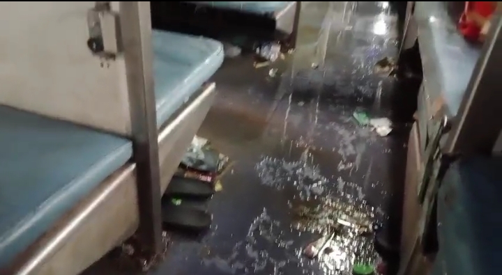 यात्रियों ने बताया कि कोच के अंदर सफाई की हालत बेहद खराब है — सीटों के नीचे कचरा फैला है, वॉशबेसिन और टॉयलेट में पानी जमा है, और दुर्गंध से माहौल असहनीय हो गया है। शिकायत के बावजूद रेलवे प्रशासन की ओर से कोई ठोस कार्रवाई नहीं हुई है।