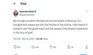 प्रधानमंत्री मोदी ने मॉस्को में हुए आतंकवादी हमले की कड़ी निंदा की, कहा- दुख की इस घड़ी में भारत रूस के साथ March 23, 2024 Read More »