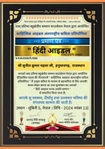 स्वतंत्र लेखक, स्तंभकार और युवा साहित्यकार सुनील कुमार महला को नेपाल की साहित्यिक संस्था ने किया सम्मानित November 13, 2024 Read More »