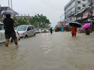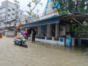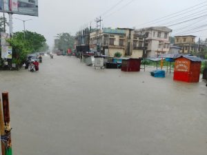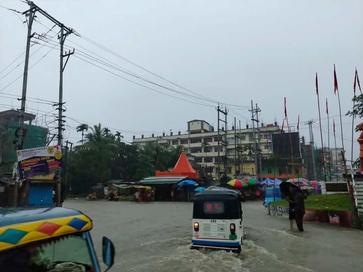 फोटो कैप्शन: लगातार भारी बारिश से जलमग्न शिलचर की सड़क और गालियां, जनजीवन बेहाल