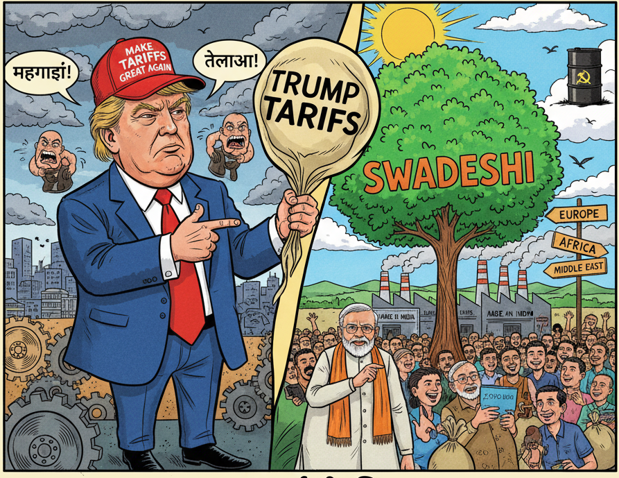 नरेन्द्र मोदी ने टम्प टेरिफ को निष्प्रभावी करने के लिए एक ऐसा ब्रम्हास्त्र खोजा जिसकी लोग कल्पना ही नहीं की थी। वह ब्रम्हास्त्र स्वदेशी का है। नरेन्द्र मोदी की समझ थी कि स्वदेशी के ब्रम्हास्त्र से डोनाल्ड ट्रम्प को पराजित किया जा सकता है, उनकी हेकडी को तोडा जा सकता है, उनकी चैधराहट को बेअसर किया जा सकता है और भारत अपनी स्वतंत्र कूटनीति और राष्ट्रीयता का डंका दुनिया के सामने बजा सकता है। नरेन्द्र मोदी ने देशवासियों से स्वदेशी अपनाने की अपील कर डाली, कह दिया कि स्वदेशी अपनाओ और राष्ट्र को जींवत रखो। स्वदेशी का मंत्र अचूक है। स्वदेशी का मंत्र अचूक कैसे है? हम दुनिया की सबसे बडी आबादी वाला देश हैं। हमारी जनसंख्या 140 करोड से उपर है। पूरे यूरोप की आबादी से बडा तो हमारा उत्तर प्रदेश है। चीन भी हमारी आबादी के सामने पीछे है। इसलिए हमारे पास घरेलू बाजार की अपार संभावनाएं हैं। अगर स्वदेशी का अभियान सफल हो गया तो फिर कई अमेरिकी कंपनियों का ही नहीं बल्कि चीनी, जापानी, कोरियाई और यूरोपीय कपंनियों का बाजा बज सकता है। हमारी अर्थव्यवस्था का एक बडा आधार घरेलू मार्केट भी है। नरेन्द्र मोदी का स्वदेशी अभियान ने देशवासियों का ध्यान भी खींचा। देशवासी नरेन्द्र मोदी के स्वदेशी अभियान से भी जुडे। केन्द्रीय गृहमंत्री अमित शाह ने प्रधानमंत्री नरेन्द्र मोदी की अपील पर जोहो मेल को अपना लिया। जोहो मेल स्वदेशी मेल है जो गूगल, जीमेल, याहू आदि को चुनौती दे रहा है। अमित शाह ने जैसे ही अपना जोहो मेल को सार्वजनिक किया और सोशल मीडिया पर लिखा कि मैने स्वदेशी जोहो मेल को अपना लिया है और मुझसे इस जोहो मेल पर संपर्क किया जा सकता है, संवाद किया जा सकता है वैसे ही जोहो मेल भारत में विख्यात हो गया, लाखों-करोडों ने जीमेल आदि विदेशी कंपनियों की जगह जोहो मेल को अपना लिया। जोहो मेल की बढती साख और बढता प्रसार अमेरिकी कपंनियों के लिए चिंता के विषय हैं और इसके लिए वे भारत को दोषी कम समझते हैं और डोनाल्ड ट्रम्प को ज्यादा दोषी मानते हैं। संकट में भी अवसर आता है, अवसर को देखने और आकलन की शक्ति होनी चाहिए।