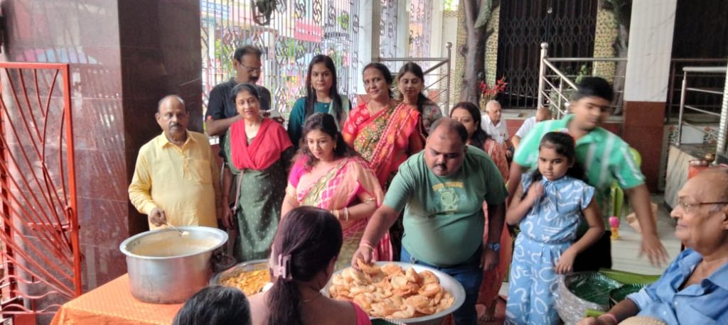 उसके बाद पंडित विजय शंकर पांडेय ने विधिवत पूजन करवाया। उपस्थित मेहमानों की उपस्थिति में केक काटकर शादी की सालगिरह पर श्वेता अजय अग्रवाल को शुभकामनाएं उपहार एवं आशीर्वाद प्रदान किया गया।