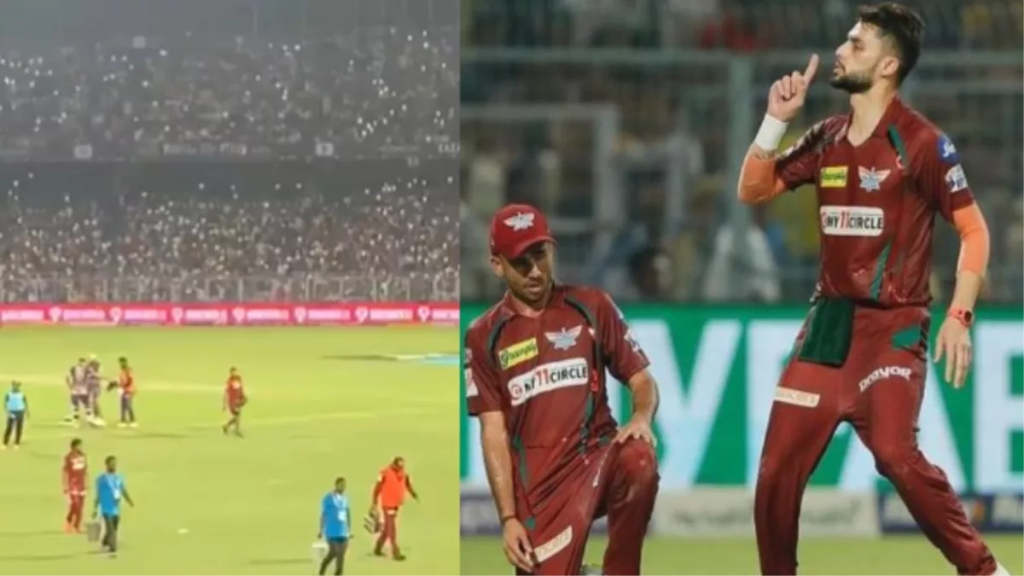 दरअसल, वायरल वीडियो में देखा जा सकता है कि ईडन गार्डन्स में फैंस नवीन उल हक को काफी पकेशान कर रहे थे। फैंस जब नवीन गेंदबाजी करने आए तो जोर-जोर से कोहली-कोहली के नारे लगाने लगे। इस दौरान मैच में एक ऐसा पल आया जब केकेआर की पारी के दौरान गुरबाज का कैट रवि बिश्नोई ने लपका ,तो नवीन उस हक ने उस दौरान फैंस को चुप रहने का इशारा किया। नवीन ने इस कैच के बाद दर्शकों की तरफ देखकर अपने होटों पर उंगली रखी और उन्हें चुप रहने का इशारा किया। उनकी ये हरकत सोशल मीडिया पर तेजी से वायरल हो रही है।
